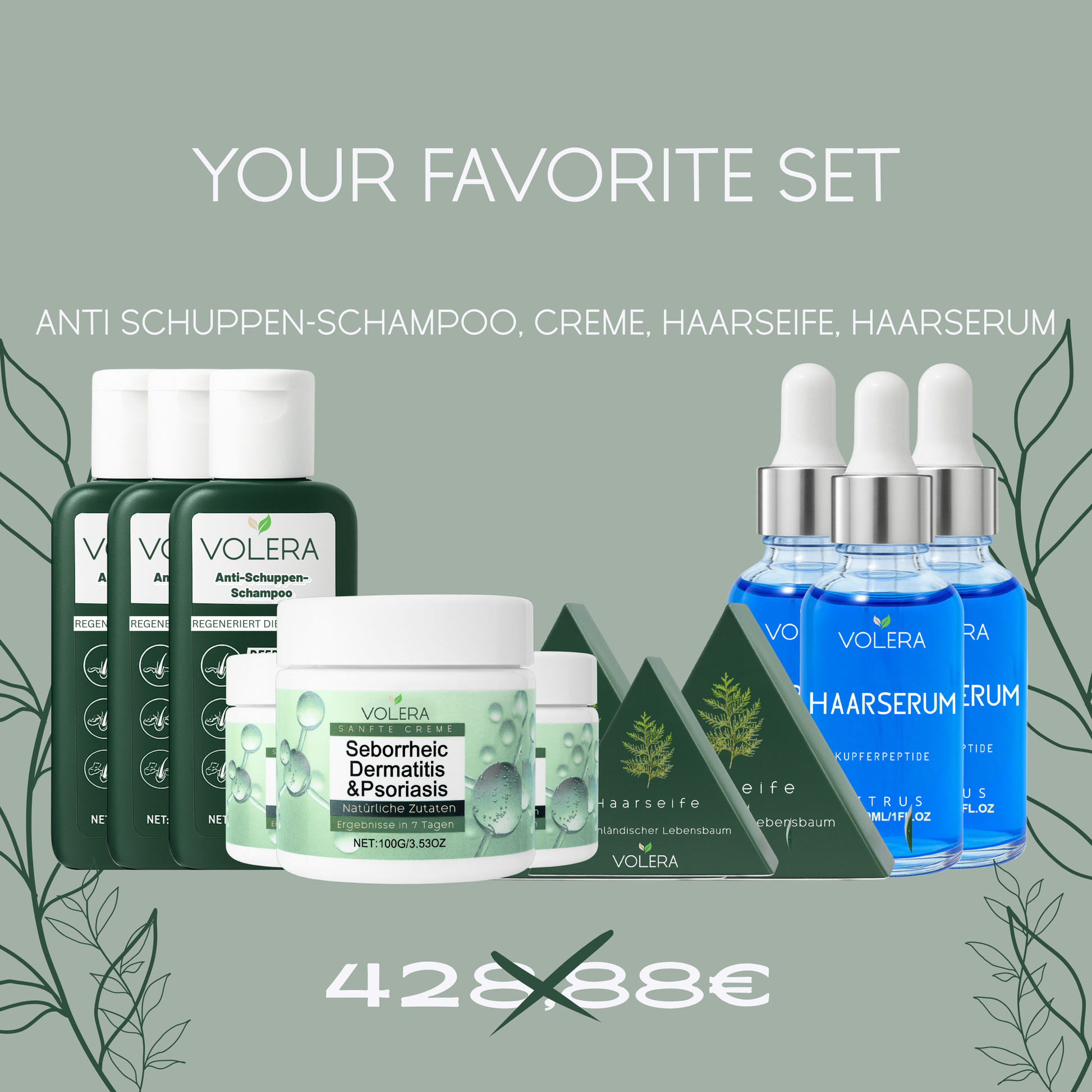 Combat dandruff effectively with our comprehensive hair care set. The anti-dandruff shampoo thoroughly cleanses and reduces flakes, while the rich cream provides intense moisture. The natural hair soap offers gentle, sulfate-free cleansing, and the hair serum seals the hair structure with valuable nutrients. Together, these four products form a professional system for scalp health and hair shine – ideal for sensitive or flaky scalps.